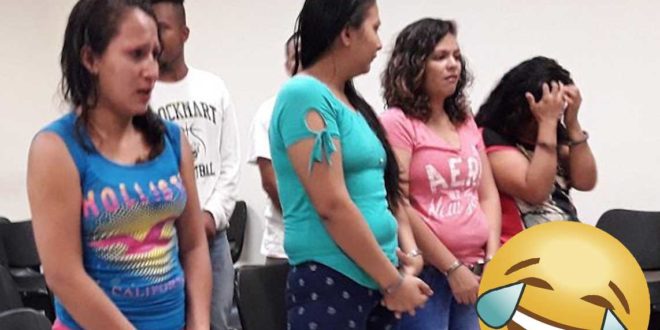 El día de ayer martes diez pandilleros fueron condenados por el delito de extorsión en perjuicio de un comerciante, esto según información de Centros Judiciales, quienes publicaron una foto en donde aparecen un grupo de mujer pandilleros llorando y suplicando piedad al escuchar que pasaran 10 años “guardaditas” en prisión.