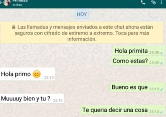 Como se puede ver en las imágenes, todo comenzó cuando el joven, cuyo nombre se desconoce, se comunica con su prima por WhatsApp y le dice que tiene algo muy importante qué decirle, eso despierta la curiosidad de la muchacha.
