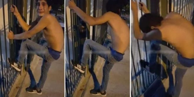Un vecino decidió captar el momento de sufrimiento que tenía este ladrón y decidió subirlo a las redes sociales para que fuera identificado.