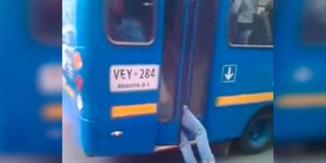 Un nuevo video de Youtube nos muestra el fallido intento de robo de este delincuente, quien al intentar huir por la puerta trasera quedó atrapado entre las puertas del bus, con la mitad del cuerpo hacia afuera. El hecho ocurrió en Colombia.