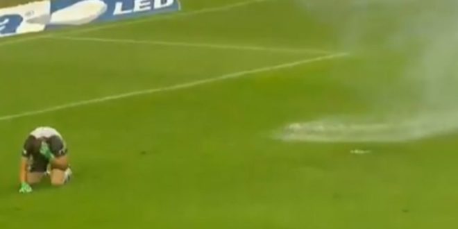 El partido que Colón y Vélez empataban sin goles en Santa Fe por la Superliga fue suspendido “por falta de garantías” a los 22 minutos del primer tiempo por el árbitro Andrés Merlos, luego de que cayeran repetidamente bombas de estruendo sobre el arco defendido por César Rigamonti, del conjunto visitante.