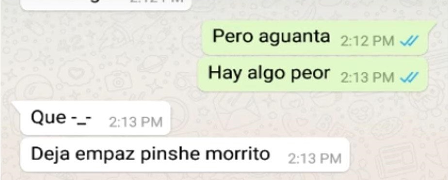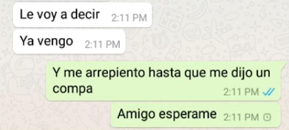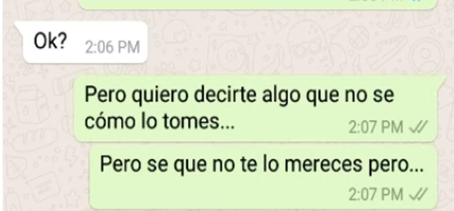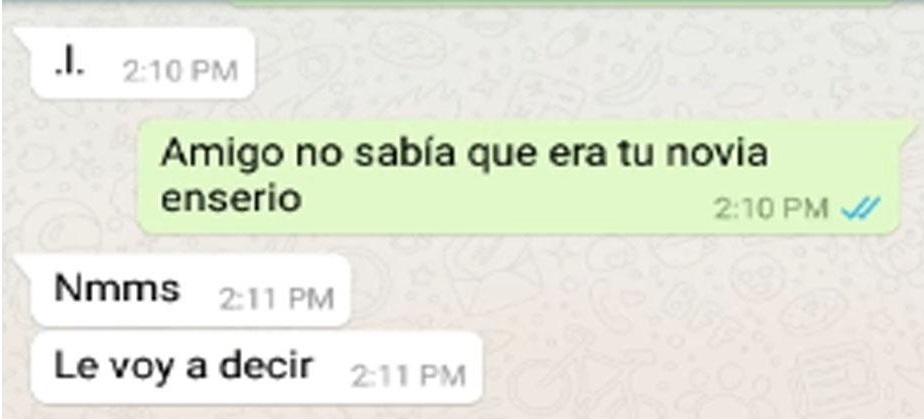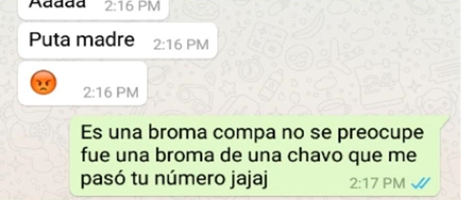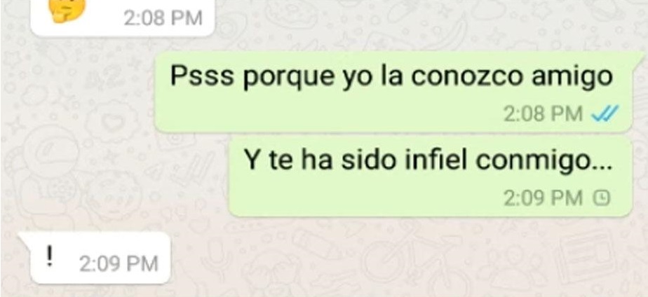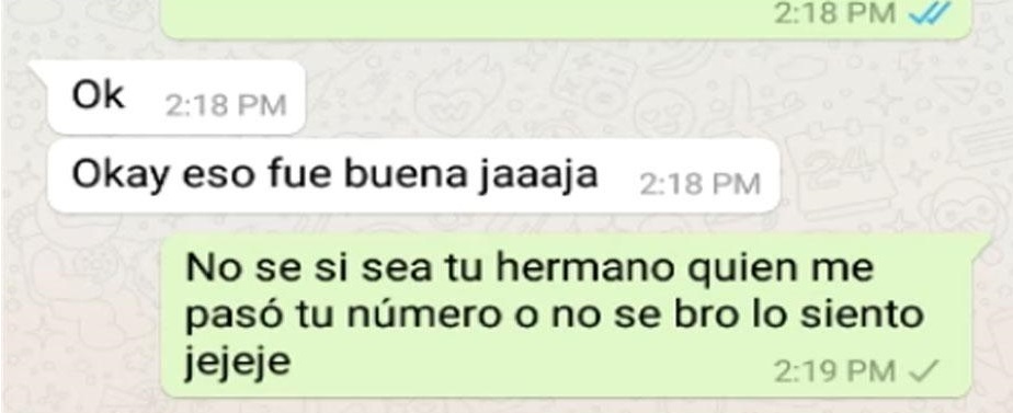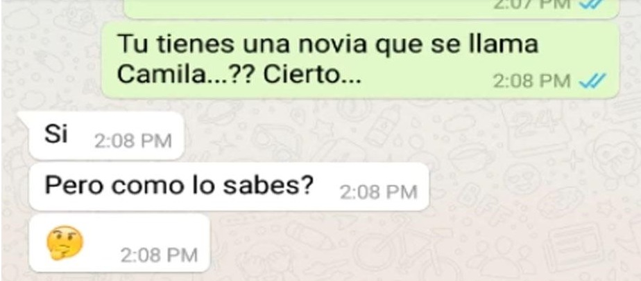 El joven se queda sorprendido de que un desconocido se comunique con él por WhatsApp y le pregunta el por qué. El bromista escribe lo siguiente: “¿Tu novia se llama Camila, cierto?. Te ha sido infiel conmigo”
