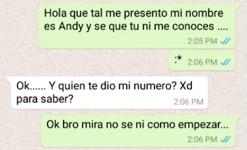 Como podrás observar en las imágenes, la conversación de WhatsApp inicia cuando “Andy”, como se llama el bromista, se comunica con su víctima “Armando” y le dice que tiene algo importante que decirle.