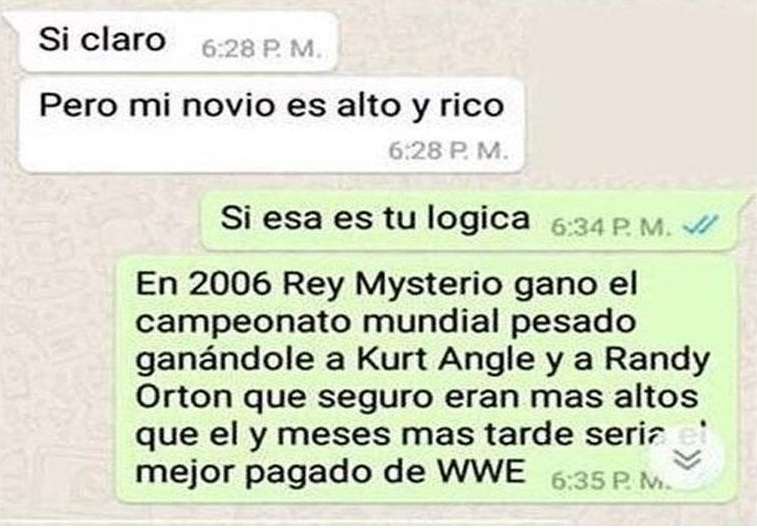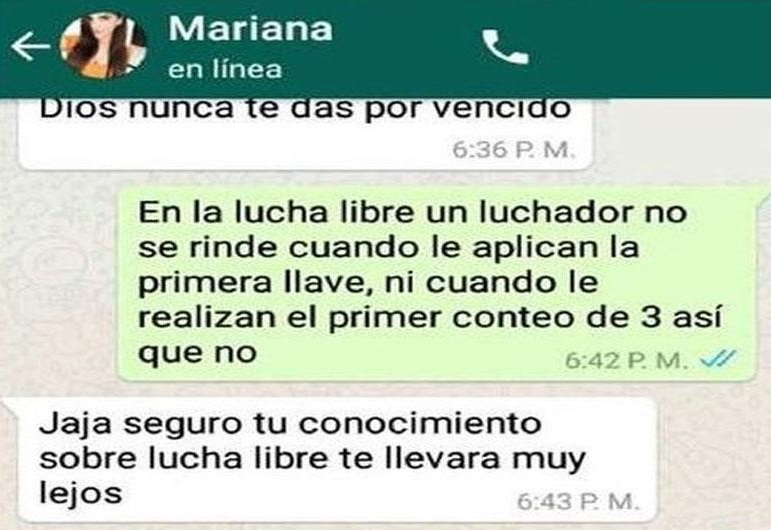 La joven tomó una contundente decisión. Un joven, fiel seguidor de la WWE, conquistó a una linda mujer en WhatsApp, pese a que ella tenía enamorado. ¿Cómo lo hizo? En este post encontrarás las capturas de la conversación y te asombrarás cuando sepas como lo hizo.