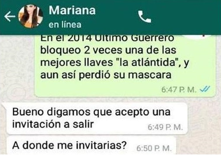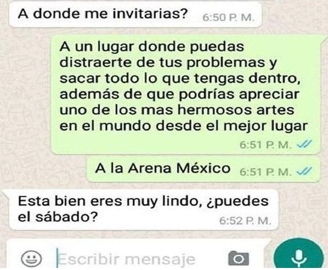 El joven no quería darse por vencido y comenzó a darle unos argumentos relacionados a la lucha libre que, aunque no lo creas, terminaron convenciendo a esta bella señorita.