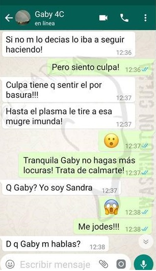 “Gaby”, que en realidad era Sandra, le escribe muy furiosa a su vecina por WhatsApp y le dice de todo.